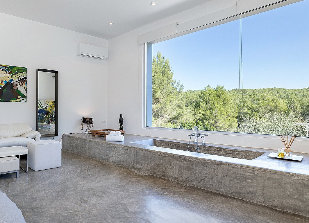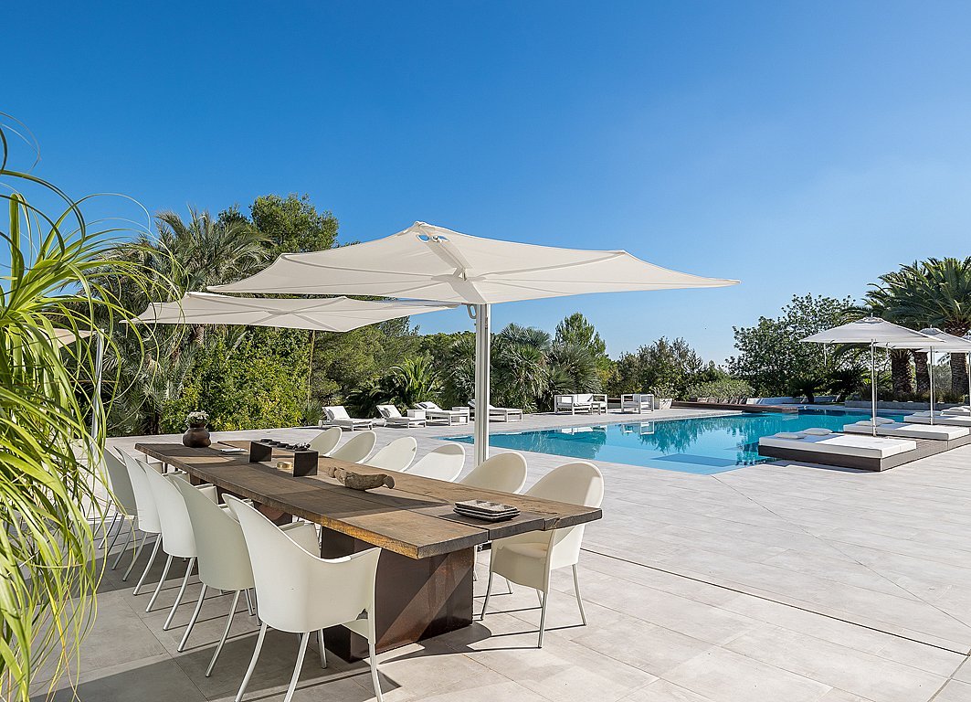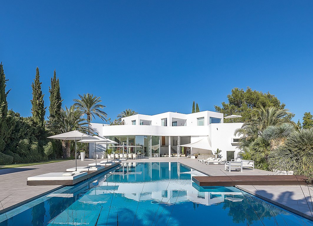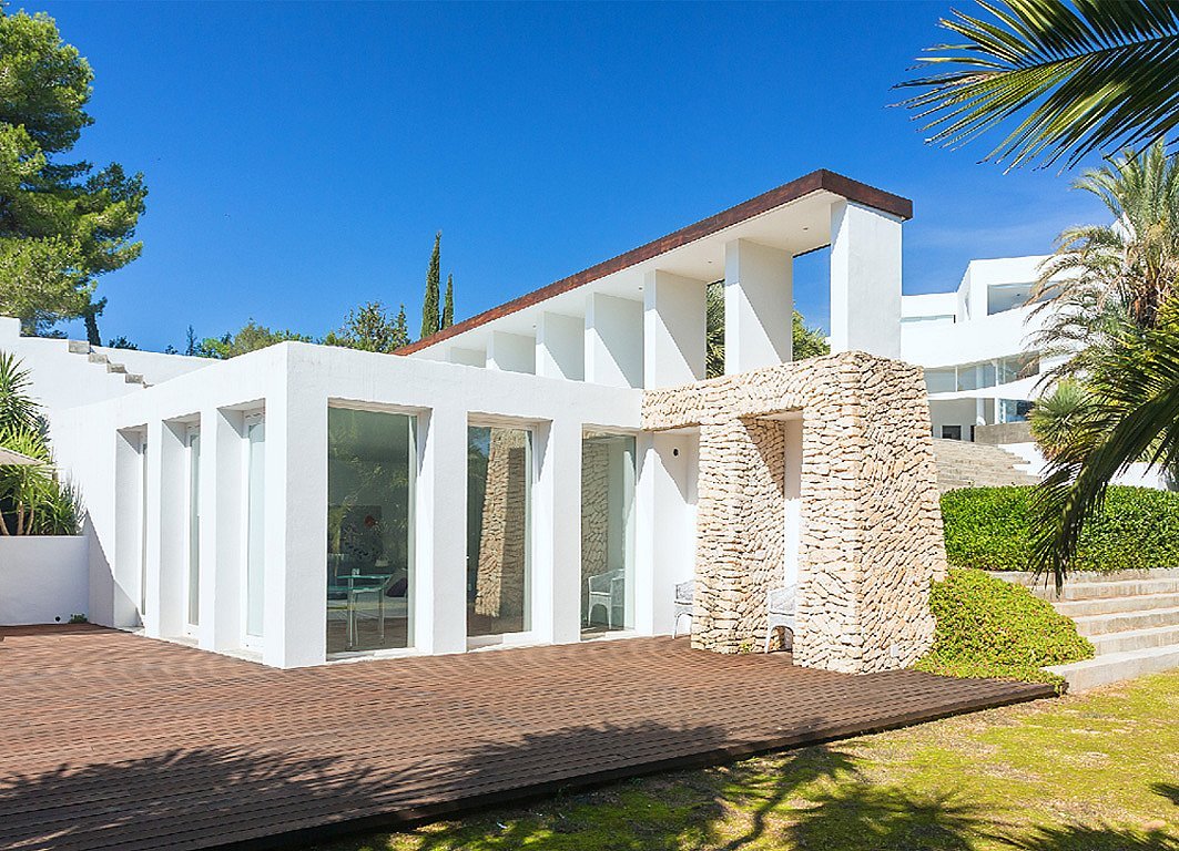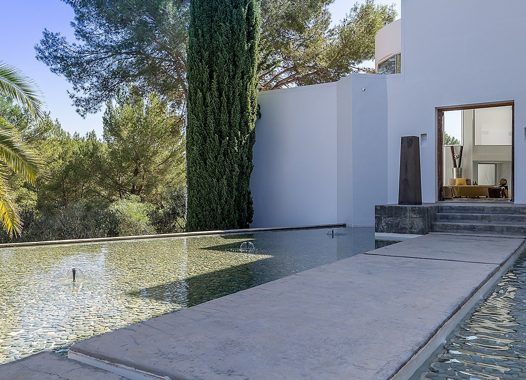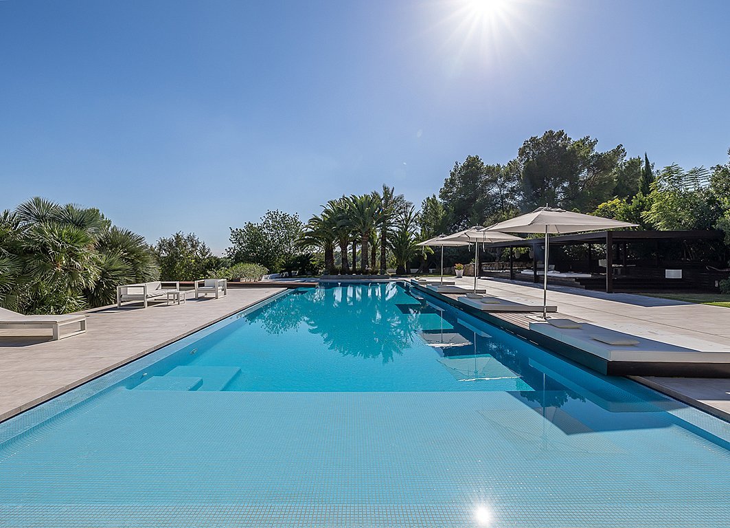 Esta lujosa villa está magníficamente situada en absoluta privacidad, muy cerca de Santa Gertrudis, una de las zonas residenciales más exclusivas de Ibiza. La escuela internacional "Morna International College" se encuentra a pocos minutos a pie o en coche. La estilosa propiedad combina el diseño minimalista con el estilo de vida mediterráneo y fascina por su estética atemporal, su extraordinario diseño interior y sus obras de arte. Los techos de doble altura de las zonas de estar crean un ambiente único, abierto y lleno de luz. Espectaculares ventanales de cristal del suelo al techo con puertas correderas de cristal conectan a la perfección el exterior y el interior para lograr el estilo de vida isleño perfecto. La exclusiva suite principal hace realidad los sueños en más de 140 m²: desde el espacioso vestidor y la chimenea abierta, hasta la terraza privada con magníficas vistas del paisaje hasta Dalt Villa. Otros tres dormitorios de diseño individual, todos con baño en suite, caja fuerte y minibar, se encuentran en la casa principal, uno de los cuales tiene una piscina cubierta climatizada con chorros de jacuzzi. Hay dos grandes suites a disposición de los huéspedes, separadas de la villa principal, ambas con cuarto de baño. Además hay un apartamento para el personal. La cocina abierta de estilo italiano es una elegante combinación de encimeras de madera natural y electrodomésticos Gaggenau. La propiedad dispone de un jardín de 10.000 m² y está rodeada de naranjos, pinos, olivos y numerosas palmeras. La impresionante piscina exterior de agua salada con una fabulosa longitud de 22 metros y varias terrazas invitan a relajarse durante todo el año. Otras comodidades incluyen una pista de tenis privada, una sala de multimedia, equipamiento técnico "State-of-the-Art" con sistema Wifi mesh, calefacción por suelo radiante, aire acondicionado, sistema solar y agua de pozo propia suministrada mediante un sistema de ósmosis.