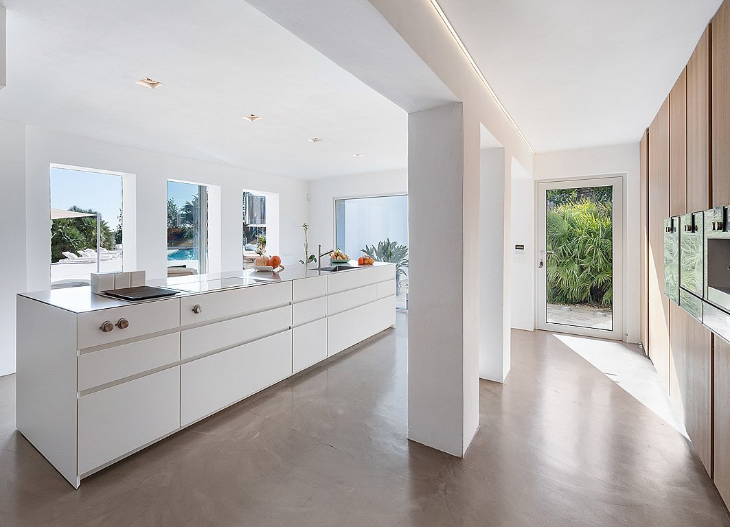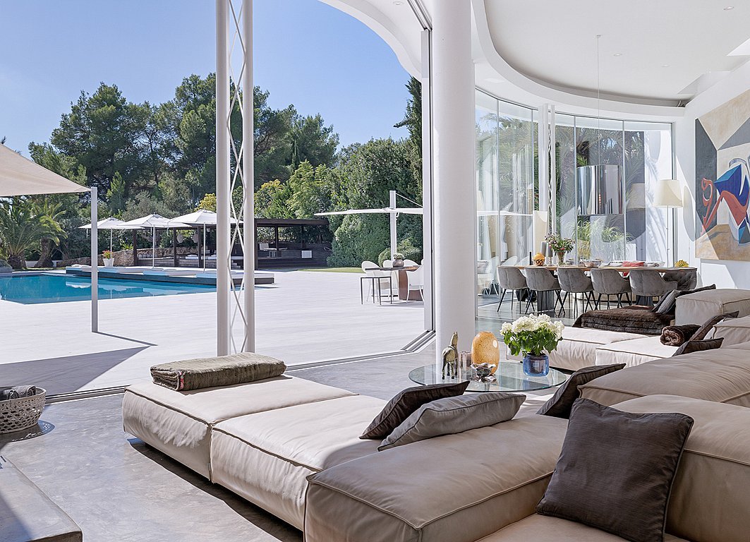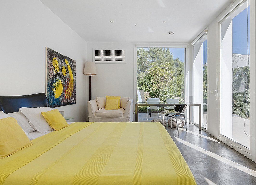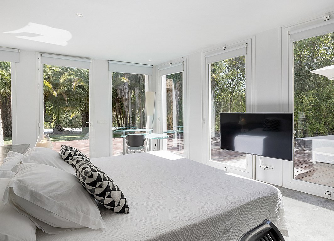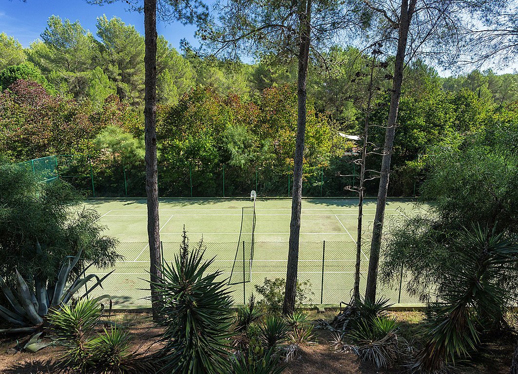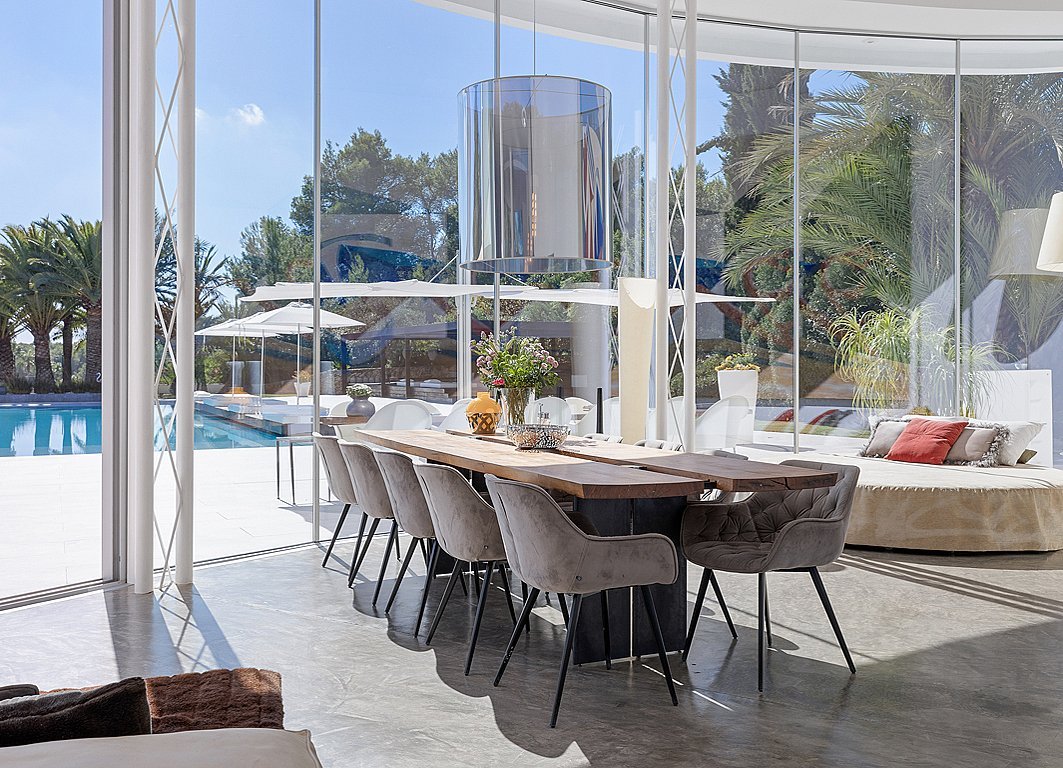 Esta lujosa villa está magníficamente situada en absoluta privacidad, muy cerca de Santa Gertrudis, una de las zonas residenciales más exclusivas de Ibiza. La escuela internacional "Morna International College" se encuentra a pocos minutos a pie o en coche. La estilosa propiedad combina el diseño minimalista con el estilo de vida mediterráneo y fascina por su estética atemporal, su extraordinario diseño interior y sus obras de arte. Los techos de doble altura de las zonas de estar crean un ambiente único, abierto y lleno de luz. Espectaculares ventanales de cristal del suelo al techo con puertas correderas de cristal conectan a la perfección el exterior y el interior para lograr el estilo de vida isleño perfecto. La exclusiva suite principal hace realidad los sueños en más de 140 m²: desde el espacioso vestidor y la chimenea abierta, hasta la terraza privada con magníficas vistas del paisaje hasta Dalt Villa. Otros tres dormitorios de diseño individual, todos con baño en suite, caja fuerte y minibar, se encuentran en la casa principal, uno de los cuales tiene una piscina cubierta climatizada con chorros de jacuzzi. Hay dos grandes suites a disposición de los huéspedes, separadas de la villa principal, ambas con cuarto de baño. Además hay un apartamento para el personal. La cocina abierta de estilo italiano es una elegante combinación de encimeras de madera natural y electrodomésticos Gaggenau. La propiedad dispone de un jardín de 10.000 m² y está rodeada de naranjos, pinos, olivos y numerosas palmeras. La impresionante piscina exterior de agua salada con una fabulosa longitud de 22 metros y varias terrazas invitan a relajarse durante todo el año. Otras comodidades incluyen una pista de tenis privada, una sala de multimedia, equipamiento técnico "State-of-the-Art" con sistema Wifi mesh, calefacción por suelo radiante, aire acondicionado, sistema solar y agua de pozo propia suministrada mediante un sistema de ósmosis.