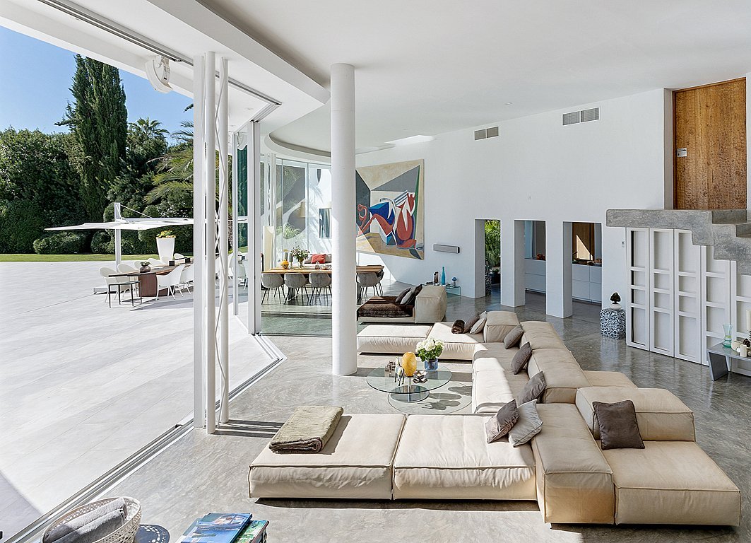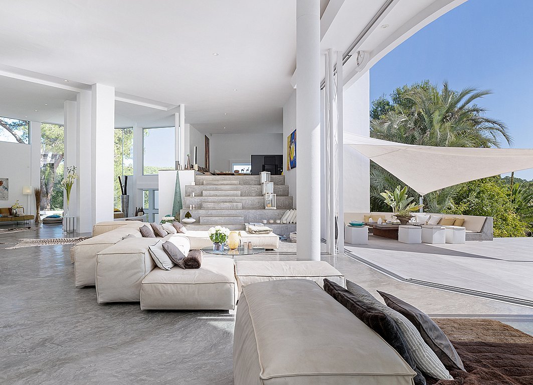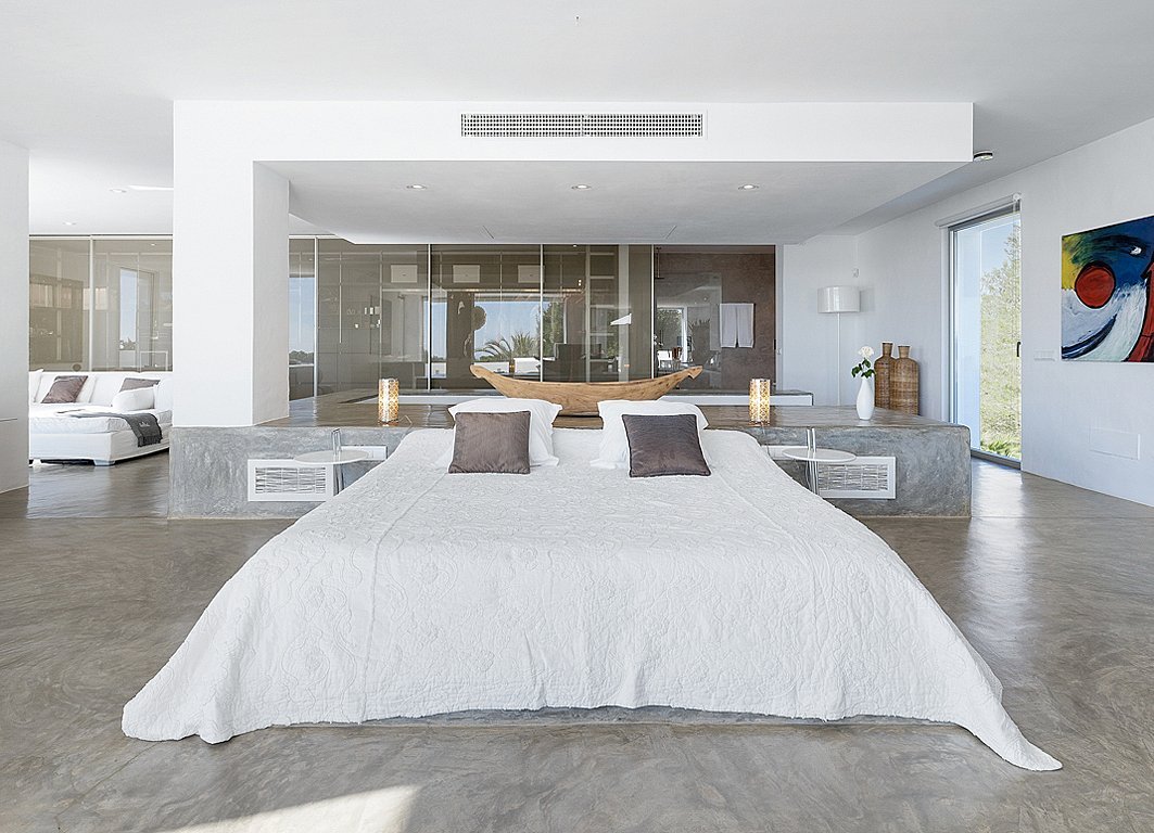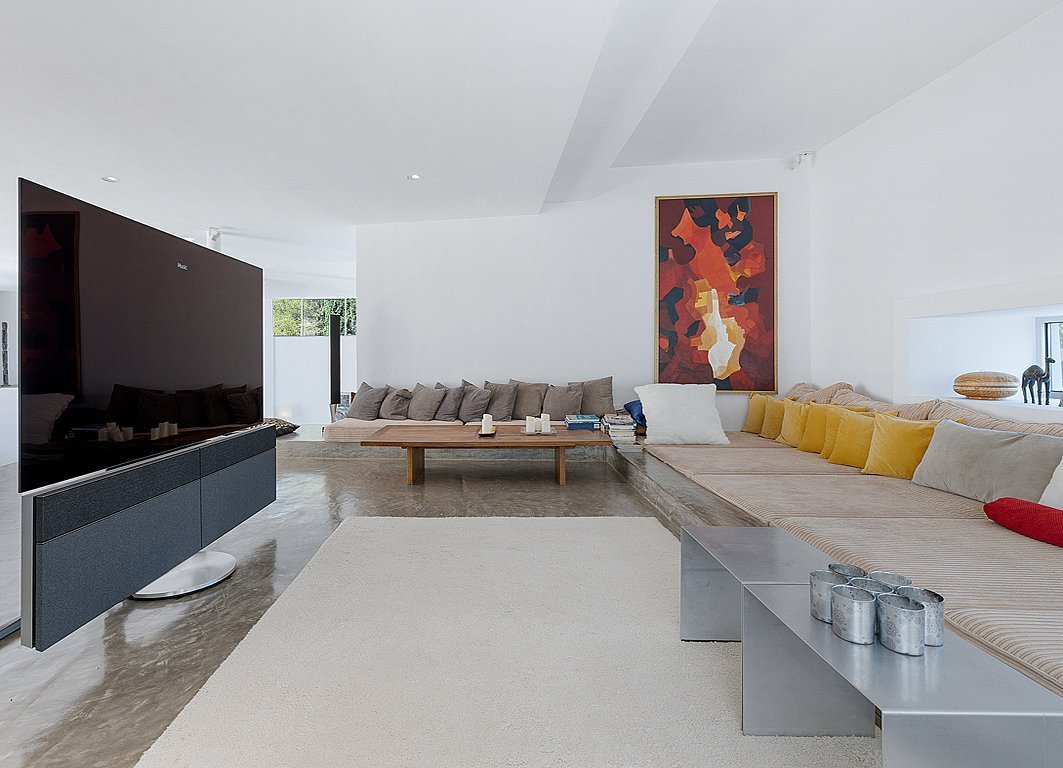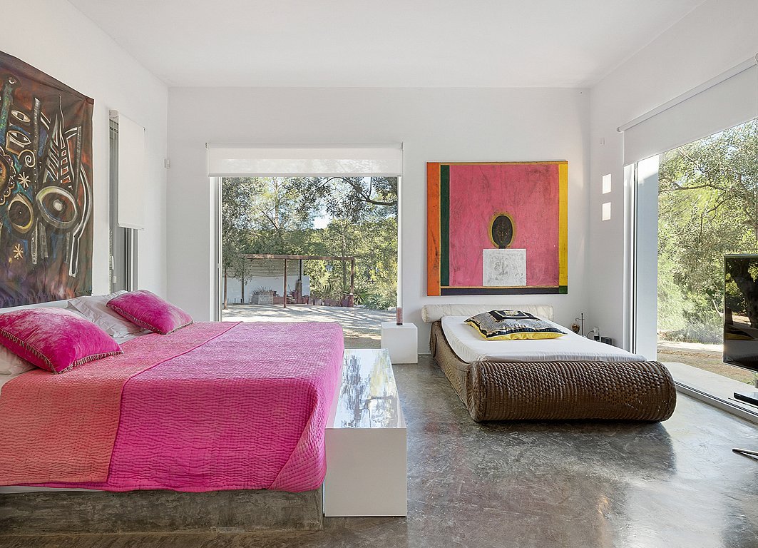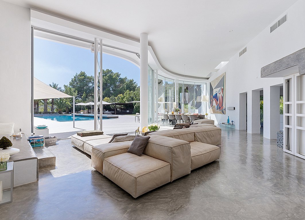 Esta lujosa villa está magníficamente situada en absoluta privacidad, muy cerca de Santa Gertrudis, una de las zonas residenciales más exclusivas de Ibiza. La escuela internacional "Morna International College" se encuentra a pocos minutos a pie o en coche. La estilosa propiedad combina el diseño minimalista con el estilo de vida mediterráneo y fascina por su estética atemporal, su extraordinario diseño interior y sus obras de arte. Los techos de doble altura de las zonas de estar crean un ambiente único, abierto y lleno de luz. Espectaculares ventanales de cristal del suelo al techo con puertas correderas de cristal conectan a la perfección el exterior y el interior para lograr el estilo de vida isleño perfecto. La exclusiva suite principal hace realidad los sueños en más de 140 m²: desde el espacioso vestidor y la chimenea abierta, hasta la terraza privada con magníficas vistas del paisaje hasta Dalt Villa. Otros tres dormitorios de diseño individual, todos con baño en suite, caja fuerte y minibar, se encuentran en la casa principal, uno de los cuales tiene una piscina cubierta climatizada con chorros de jacuzzi. Hay dos grandes suites a disposición de los huéspedes, separadas de la villa principal, ambas con cuarto de baño. Además hay un apartamento para el personal. La cocina abierta de estilo italiano es una elegante combinación de encimeras de madera natural y electrodomésticos Gaggenau. La propiedad dispone de un jardín de 10.000 m² y está rodeada de naranjos, pinos, olivos y numerosas palmeras. La impresionante piscina exterior de agua salada con una fabulosa longitud de 22 metros y varias terrazas invitan a relajarse durante todo el año. Otras comodidades incluyen una pista de tenis privada, una sala de multimedia, equipamiento técnico "State-of-the-Art" con sistema Wifi mesh, calefacción por suelo radiante, aire acondicionado, sistema solar y agua de pozo propia suministrada mediante un sistema de ósmosis.