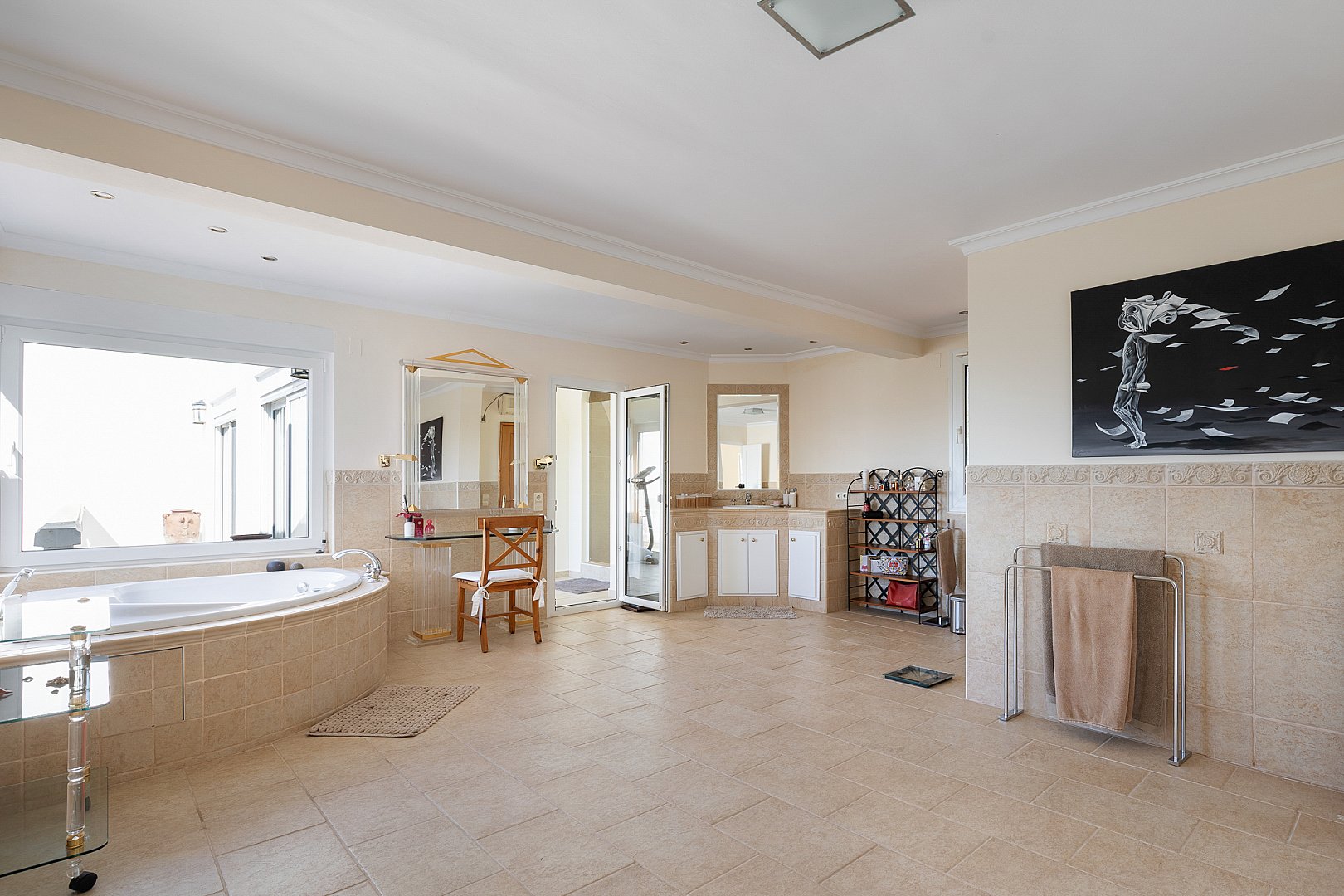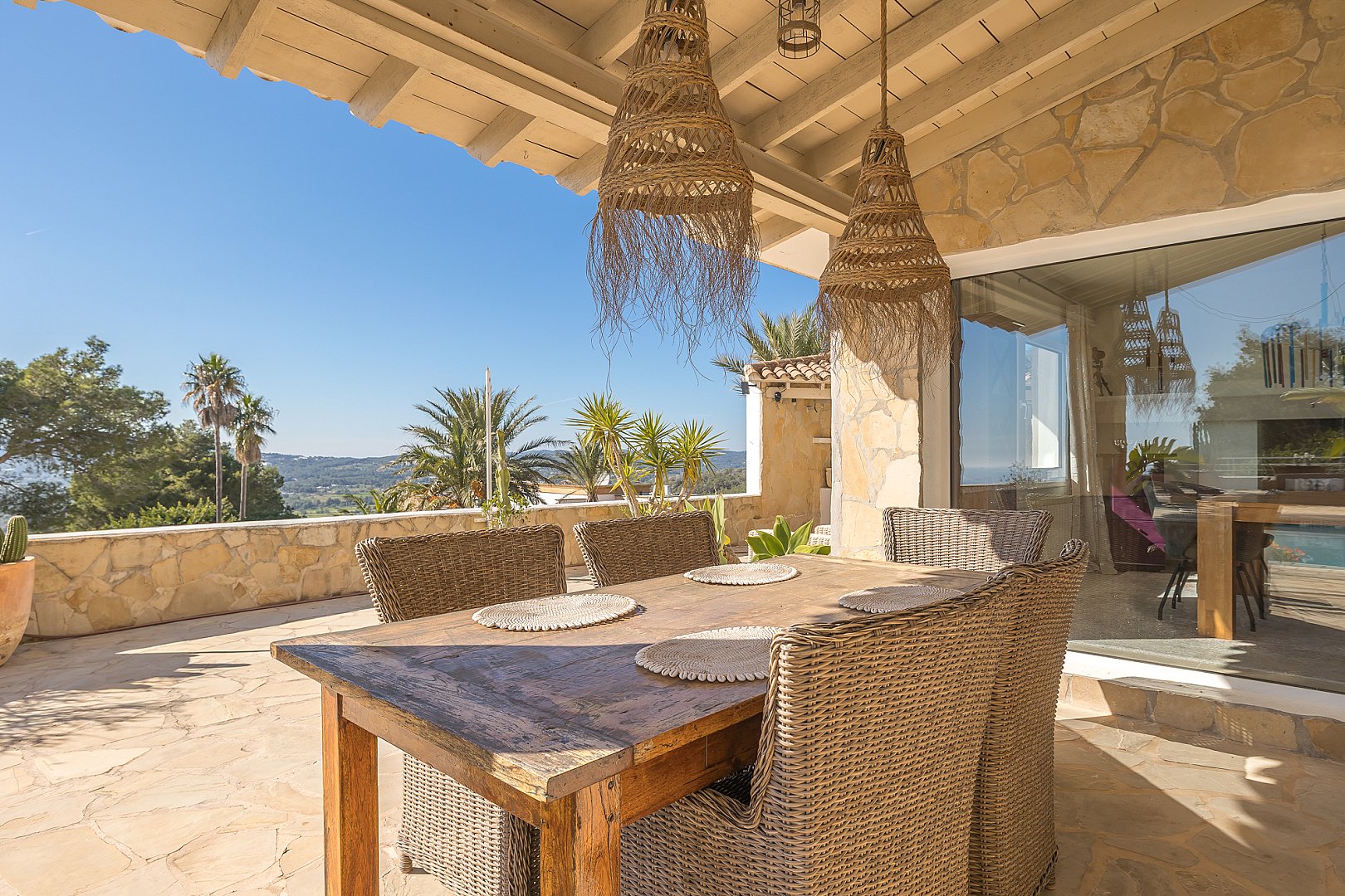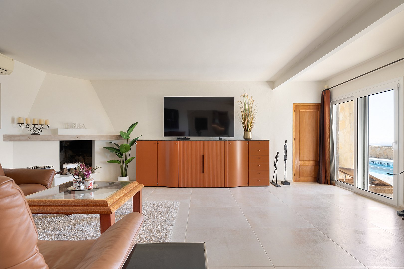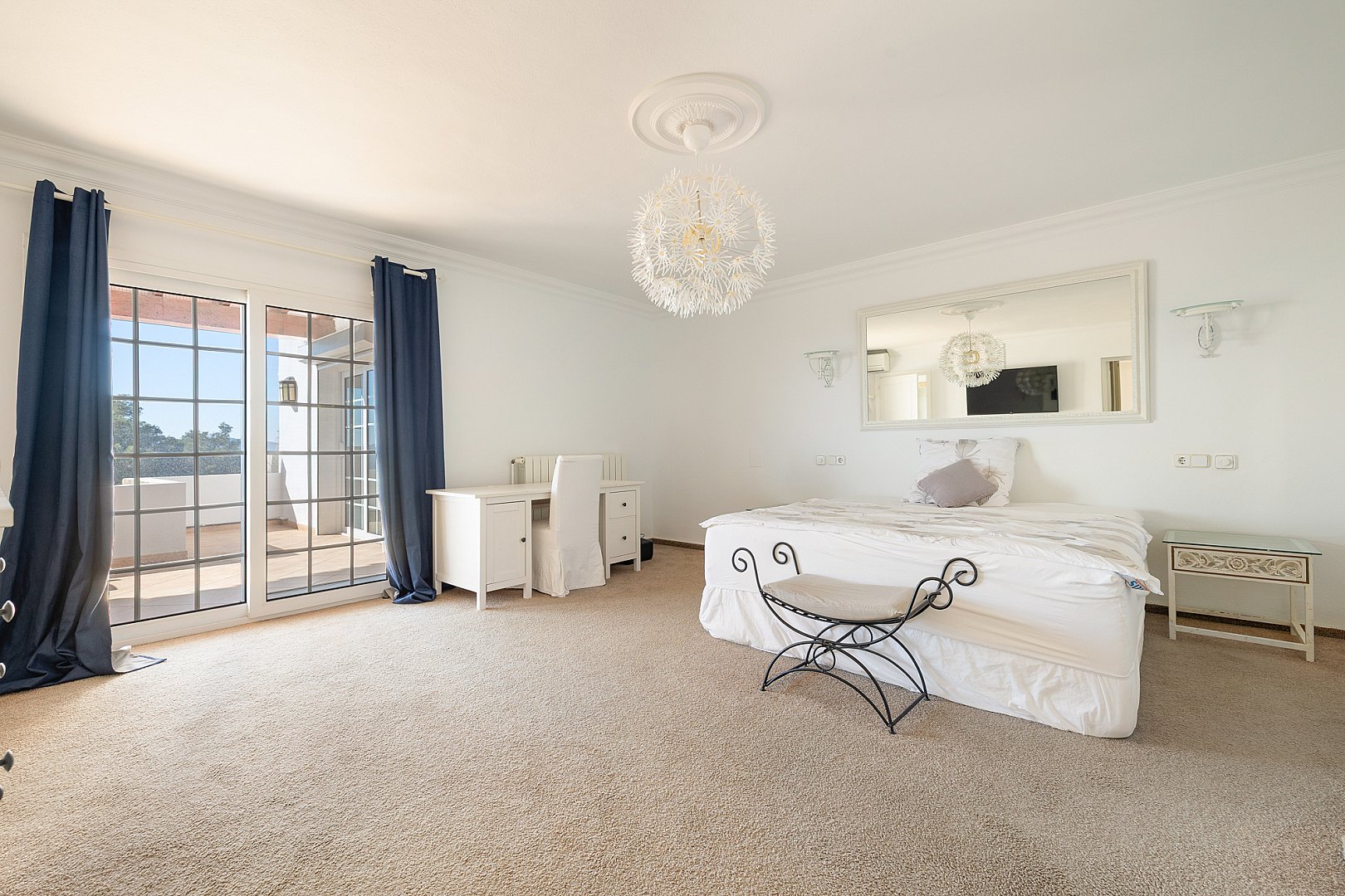 En la urbanización privada y vigilada de Can Furnet, situada en uno de los puntos más altos del complejo, se encuentra esta villa con una ubicación panorámica excepcional. Desde aquí se disfruta de una vista panorámica de 360 grados sin obstáculos sobre las colinas circundantes, el casco histórico de Dalt Vila, el mar Mediterráneo y la isla de Formentera. La ubicación combina privacidad con la proximidad a la ciudad de Ibiza y a los principales puntos de interés de la isla. La arquitectura de la propiedad se basa en un concepto de distribución funcional con varias áreas independientes. La vivienda se divide en dos unidades principales y se complementa con un estudio independiente y un apartamento de invitados totalmente equipado. Esto hace que la villa sea adecuada tanto para familias numerosas como para alojar invitados o personal. La planta superior está dedicada completamente a la suite principal. Incluye un amplio vestidor, un baño con jacuzzi y vistas a las montañas, así como una zona privada de spa con hammam. En total, la villa dispone de seis dormitorios, cada uno con su propio baño. La zona exterior está dominada por una amplia área de piscina con varias terrazas. Estas ofrecen diferentes espacios para tomar el sol, relajarse o disfrutar de comidas al aire libre. Desde la mayoría de las zonas se puede disfrutar de vistas al paisaje y al mar. La propiedad ofrece una base constructiva sólida y potencial para una modernización personalizada. Gracias a su ubicación especial y a su generosa distribución, puede convertirse en una residencia de alto nivel en una de las zonas residenciales más demandadas de Ibiza.