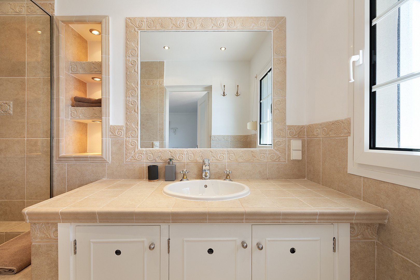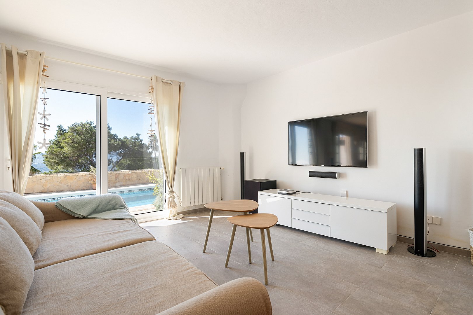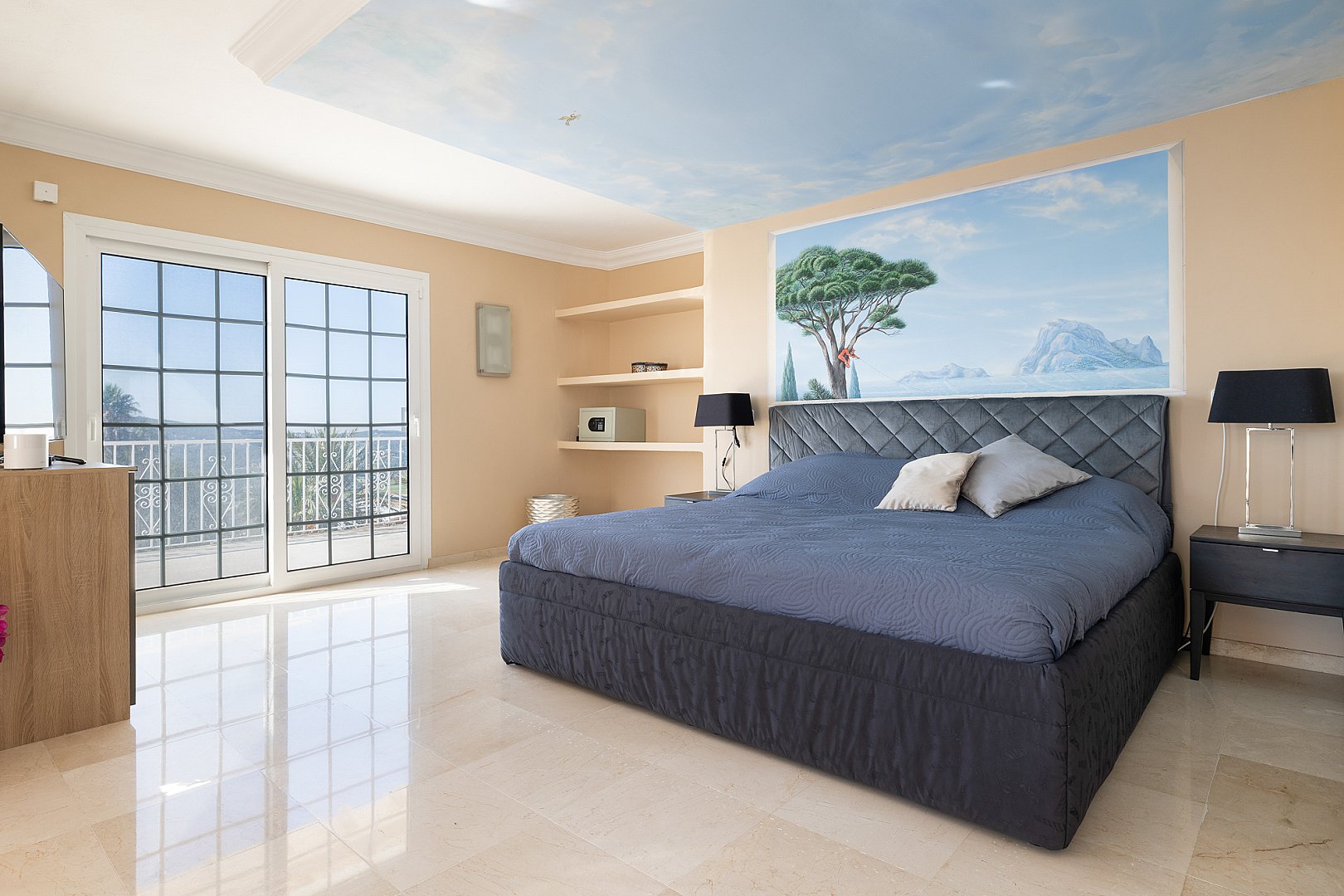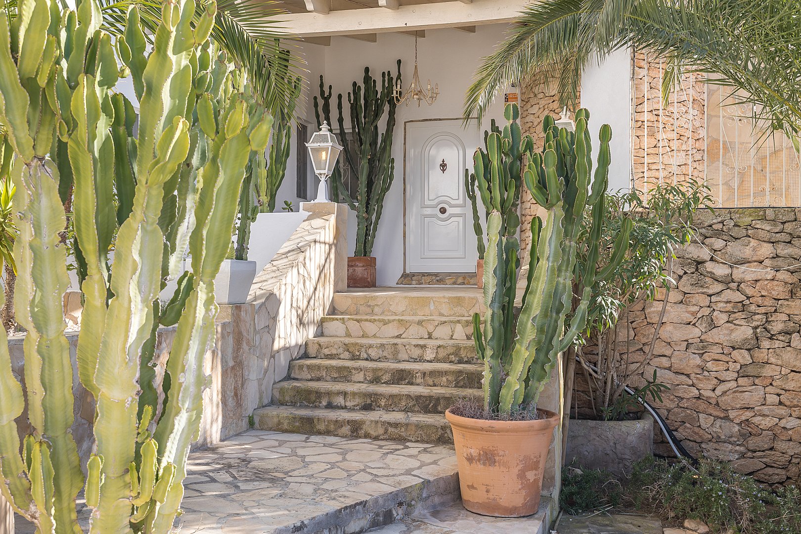 En la urbanización privada y vigilada de Can Furnet, situada en uno de los puntos más altos del complejo, se encuentra esta villa con una ubicación panorámica excepcional. Desde aquí se disfruta de una vista panorámica de 360 grados sin obstáculos sobre las colinas circundantes, el casco histórico de Dalt Vila, el mar Mediterráneo y la isla de Formentera. La ubicación combina privacidad con la proximidad a la ciudad de Ibiza y a los principales puntos de interés de la isla. La arquitectura de la propiedad se basa en un concepto de distribución funcional con varias áreas independientes. La vivienda se divide en dos unidades principales y se complementa con un estudio independiente y un apartamento de invitados totalmente equipado. Esto hace que la villa sea adecuada tanto para familias numerosas como para alojar invitados o personal. La planta superior está dedicada completamente a la suite principal. Incluye un amplio vestidor, un baño con jacuzzi y vistas a las montañas, así como una zona privada de spa con hammam. En total, la villa dispone de seis dormitorios, cada uno con su propio baño. La zona exterior está dominada por una amplia área de piscina con varias terrazas. Estas ofrecen diferentes espacios para tomar el sol, relajarse o disfrutar de comidas al aire libre. Desde la mayoría de las zonas se puede disfrutar de vistas al paisaje y al mar. La propiedad ofrece una base constructiva sólida y potencial para una modernización personalizada. Gracias a su ubicación especial y a su generosa distribución, puede convertirse en una residencia de alto nivel en una de las zonas residenciales más demandadas de Ibiza.