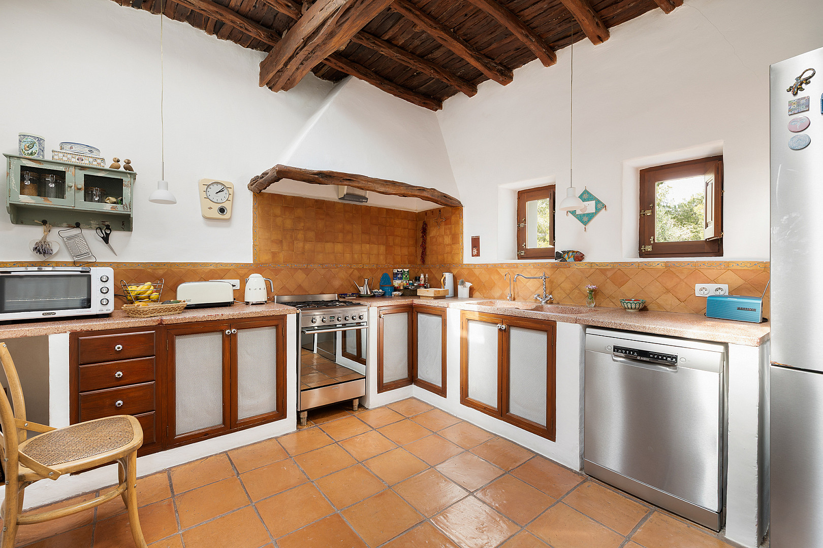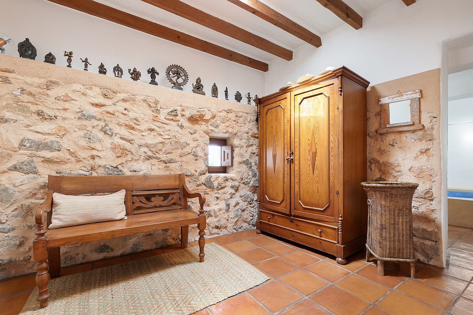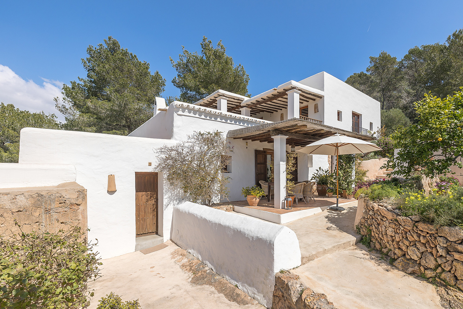 Esta impresionante finca encarna el auténtico patrimonio ibicenco y ofrece un refugio único, situado en una amplia y generosa parcela en la que también se encuentra una era tradicional de trilla. Es un lugar de absoluta privacidad que combina el encanto atemporal de la arquitectura histórica con el confort moderno, al mismo tiempo que permite disfrutar de la cercanía inmediata a la vibrante vida de la ciudad de Ibiza. La amplia superficie total ha sido diseñada con gran atención al detalle y preservando los elementos tradicionales. En la zona principal de la vivienda encontrará una lujosa suite principal, que destaca por su vestidor (walk-in closet) y un elegante baño en suite. Además, delante de la suite principal hay una terraza soleada con una zona de estar cubierta. La finca dispone también de otra cómoda habitación de invitados con baño independiente. La autenticidad histórica de la propiedad se ve reforzada por sus versátiles edificaciones auxiliares: los tradicionales corrales han sido transformados con estilo en encantadoras habitaciones de invitados independientes. Asimismo, un atelier con dormitorio y acceso exterior ofrece un gran potencial para convertirse en un apartamento independiente, ideal para personal de servicio o huéspedes adicionales. Con un total de cinco dormitorios y la comodidad de calefacción central, esta finca es una residencia exclusiva adecuada para vivir durante todo el año. En la amplia parcela también hay varias plazas de aparcamiento disponibles. Se trata de una oportunidad poco común de poseer un pedazo de la historia ibicenca y vivir en un entorno tradicional y lujoso.
