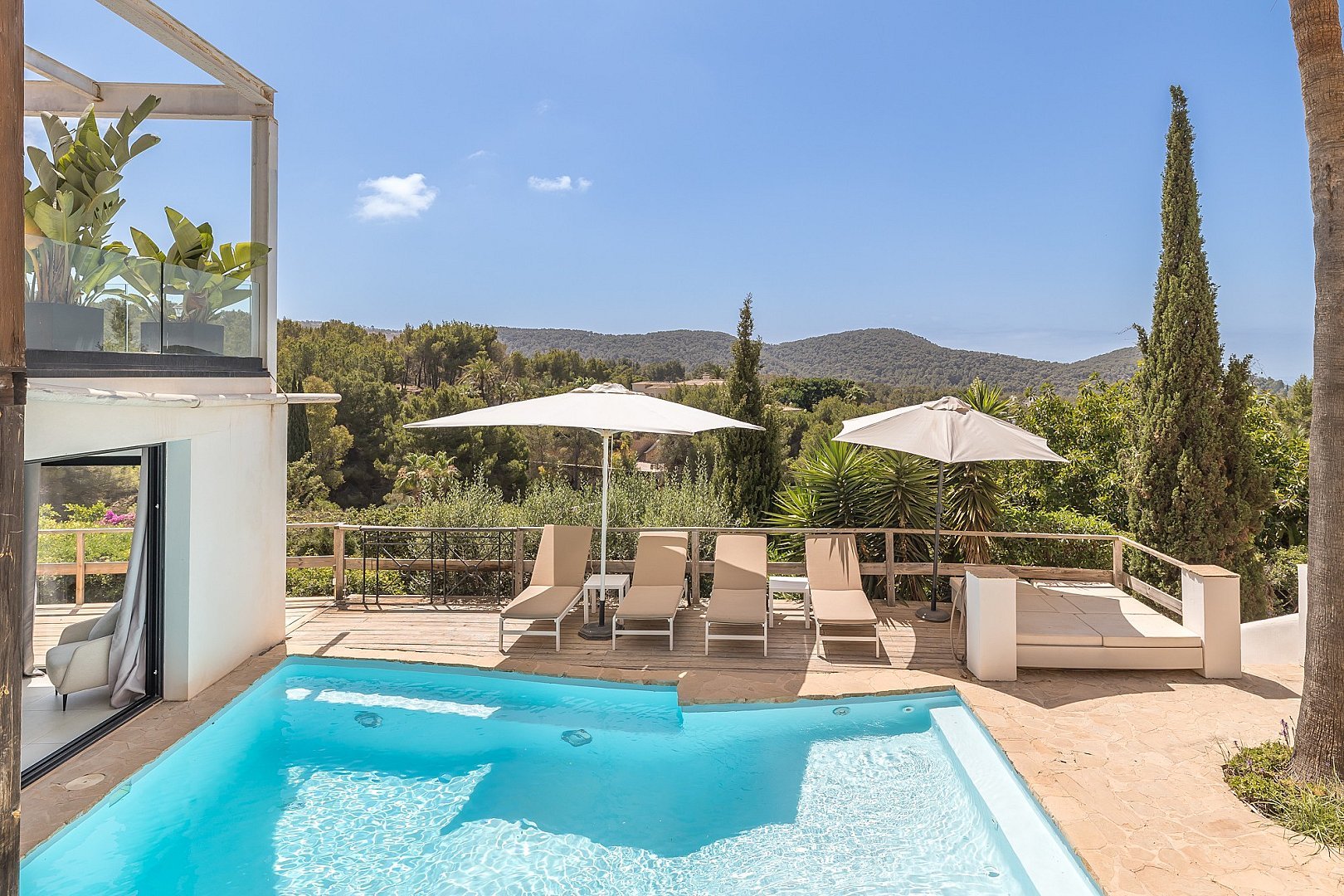 Tipo: Casa • Región: Ibiza ciudad y alrededores • Superfície total: 410 m2 • Total de habitaciones: 5 • Dormitorios: 4 • Baños: 4 • Superfície de parcela: 1.000 m2 • Chimenea • Piscina • Aseo de cortesia • Revestimiento del suelo: Baldosas •
