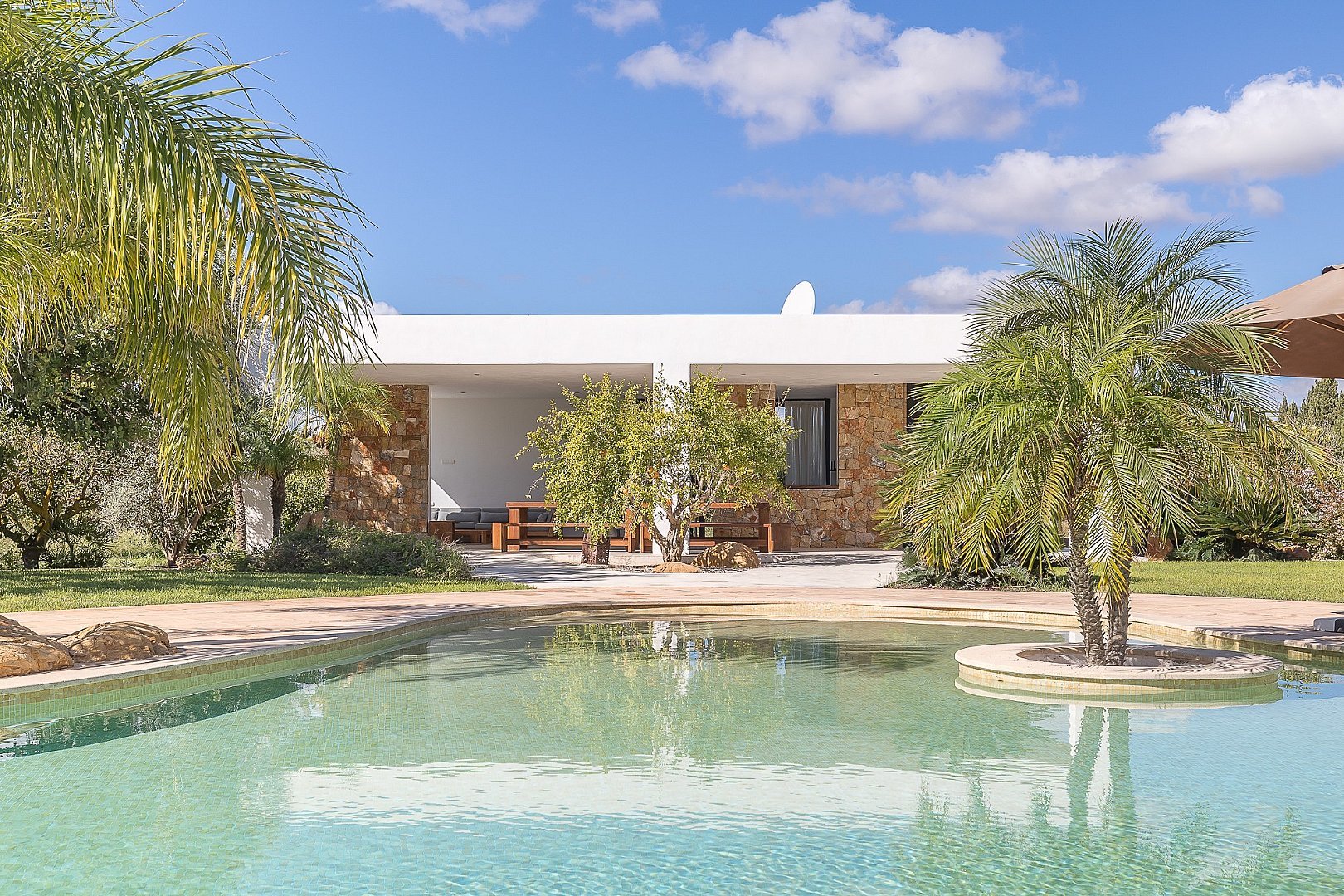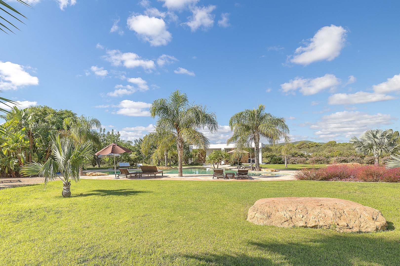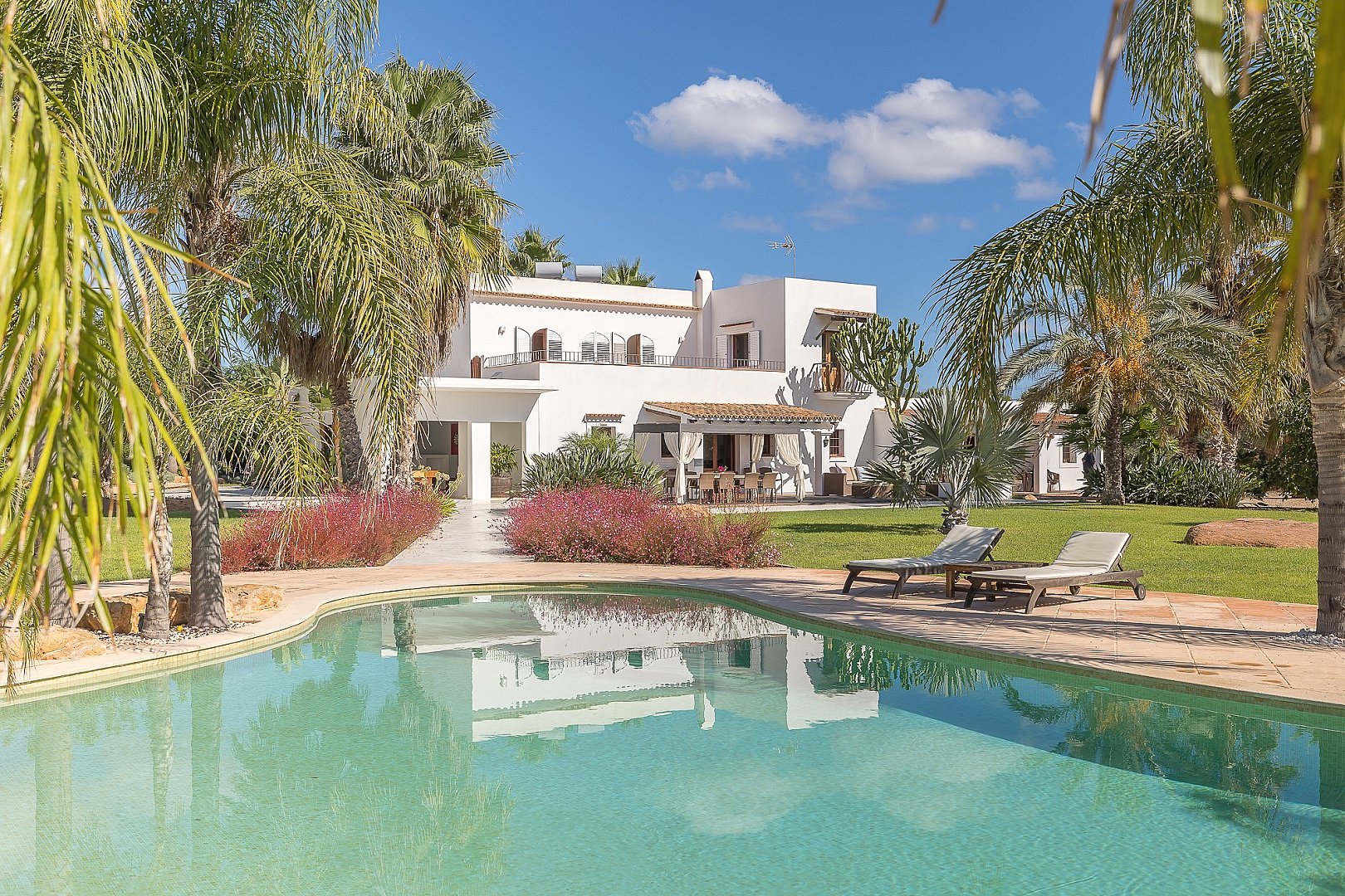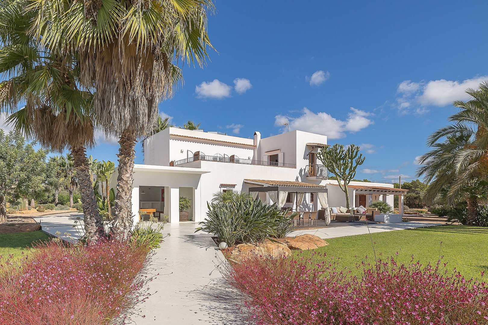 Esta preciosa villa ibicenca, está localizada a menos de diez minutos de los pueblos de Santa Eulalia y San Carlos. Y muy cerca de las playas de Es Canar y Cala Nova entre otras. Desde la terraza del jardín accedemos directamente al salón con chimenea y cocina abierta. También hay un segundo salón, con acceso independiente desde el exterior. En total hay seis habitaciones dobles, distribuidas en dos pisos. Y cinco baños. En la planta de arriba también se puede disfrutar de la gran terraza con vistas al jardín. El exterior armonizado con un lindo jardín mediterráneo, algunas palmeras, camas balinesas y una gran piscina playa es una gran invitación a disfrutar de los días soleados, pudiendo acoger a amigos, familia y celebraciones especiales. Este precioso lugar es elegido cada año por parejas internacionales para celebrar su boda en la bonita isla de Ibiza. Además, hay una zona de barbacoa y gimnasio al lado de la piscina. Y un espacio billar al lado de la casa. Todo listo y pensado para disfrutar en buena compañía. La villa tiene una licencia turística, que aporta ingresos recurrentes desde hace diez temporadas. Por último, y no menos importante, en el gran terreno también hay unos viveros que están alquilados sumando otro ingreso mensual. Es una oportunidad muy completa, tanto si buscas una inversión como si lo que deseas es encontrar tu nuevo hogar.