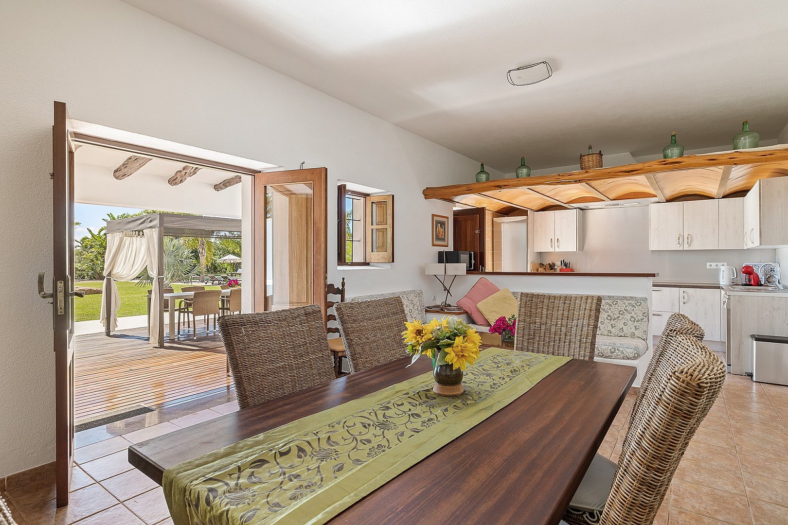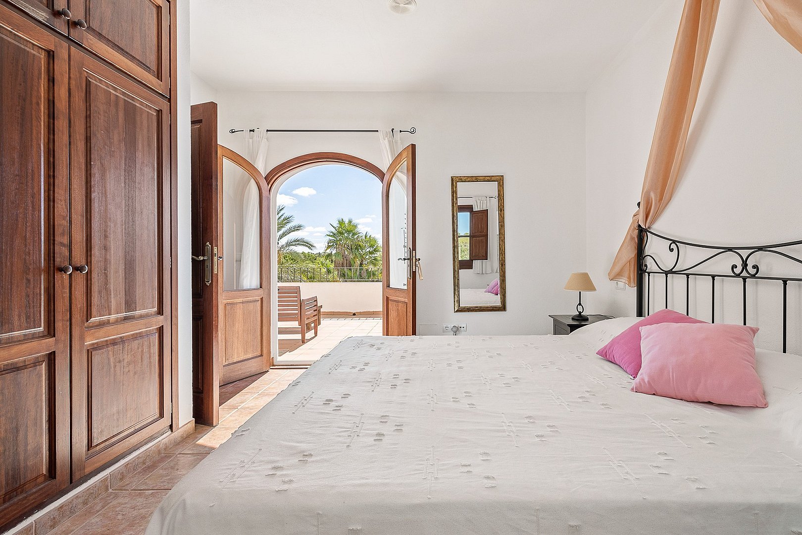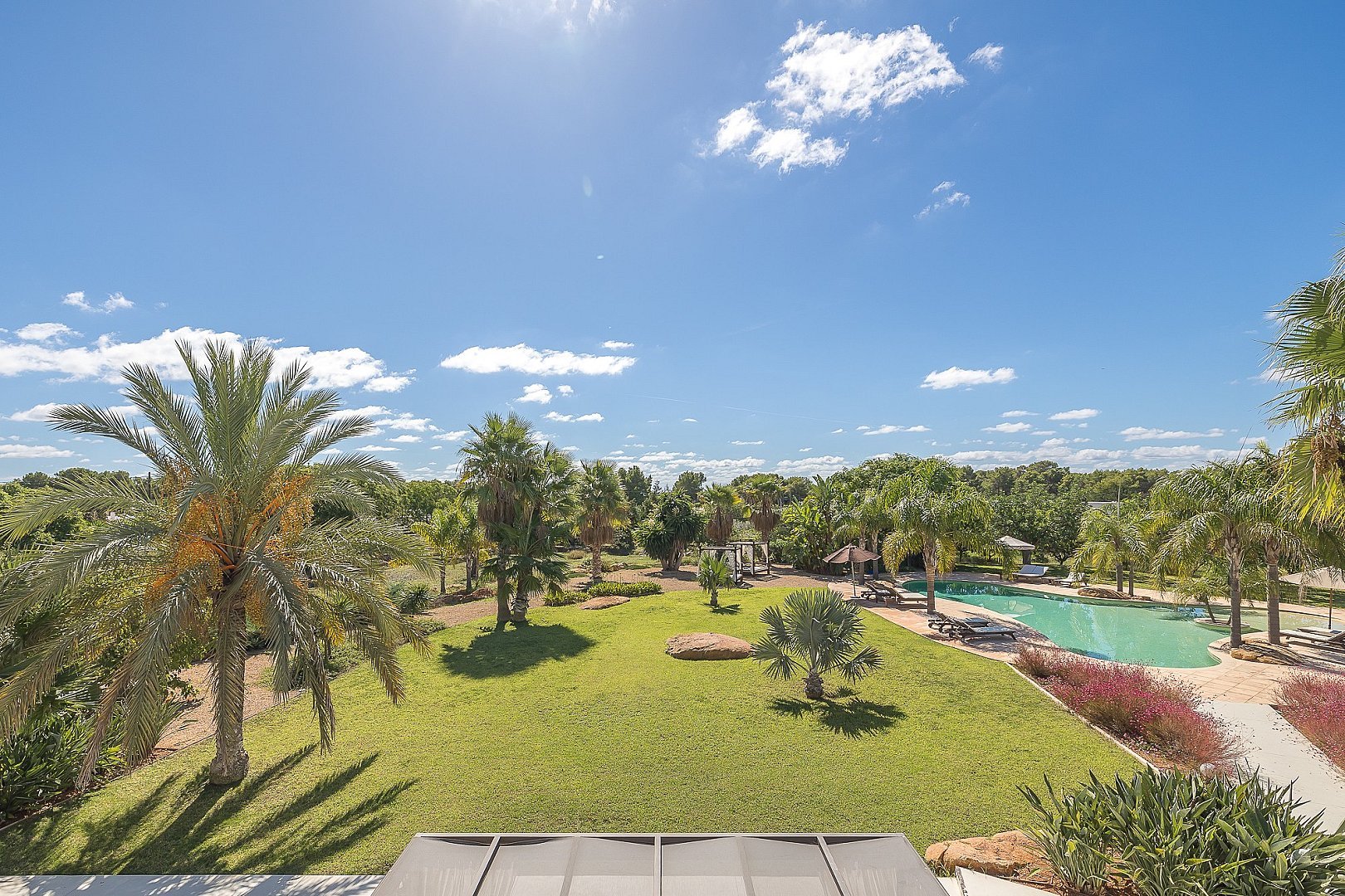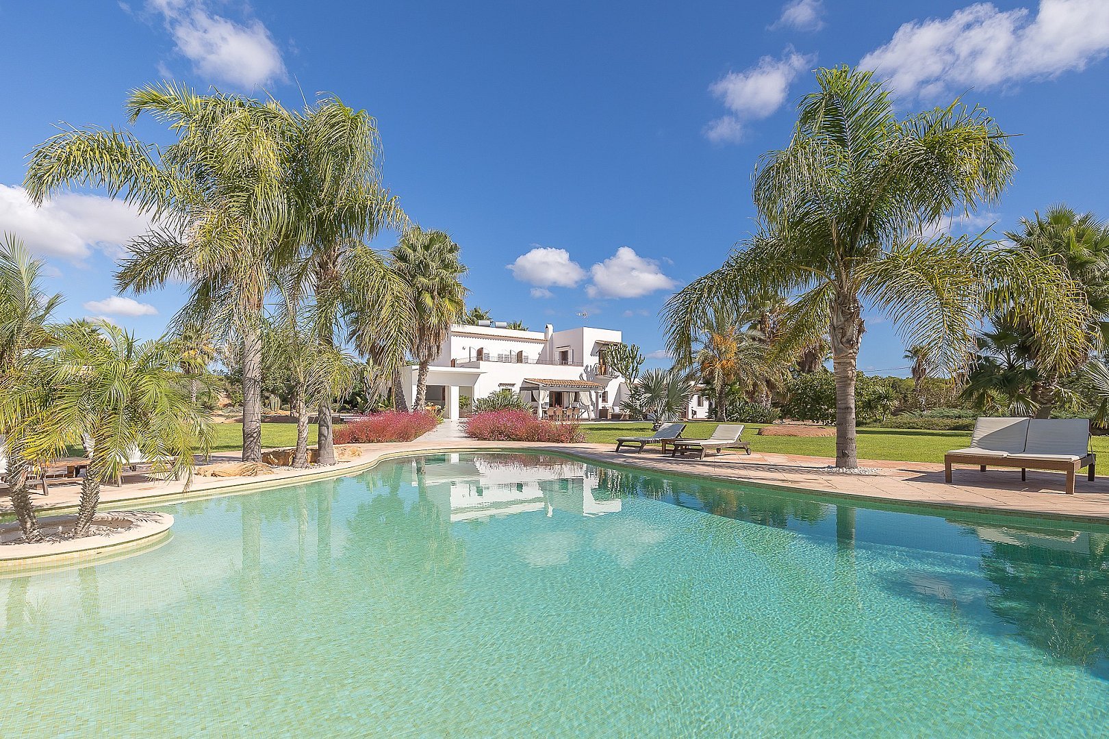 Esta preciosa villa ibicenca, está localizada a menos de diez minutos de los pueblos de Santa Eulalia y San Carlos. Y muy cerca de las playas de Es Canar y Cala Nova entre otras. Desde la terraza del jardín accedemos directamente al salón con chimenea y cocina abierta. También hay un segundo salón, con acceso independiente desde el exterior. En total hay seis habitaciones dobles, distribuidas en dos pisos. Y cinco baños. En la planta de arriba también se puede disfrutar de la gran terraza con vistas al jardín. El exterior armonizado con un lindo jardín mediterráneo, algunas palmeras, camas balinesas y una gran piscina playa es una gran invitación a disfrutar de los días soleados, pudiendo acoger a amigos, familia y celebraciones especiales. Este precioso lugar es elegido cada año por parejas internacionales para celebrar su boda en la bonita isla de Ibiza. Además, hay una zona de barbacoa y gimnasio al lado de la piscina. Y un espacio billar al lado de la casa. Todo listo y pensado para disfrutar en buena compañía. La villa tiene una licencia turística, que aporta ingresos recurrentes desde hace diez temporadas. Por último, y no menos importante, en el gran terreno también hay unos viveros que están alquilados sumando otro ingreso mensual. Es una oportunidad muy completa, tanto si buscas una inversión como si lo que deseas es encontrar tu nuevo hogar.