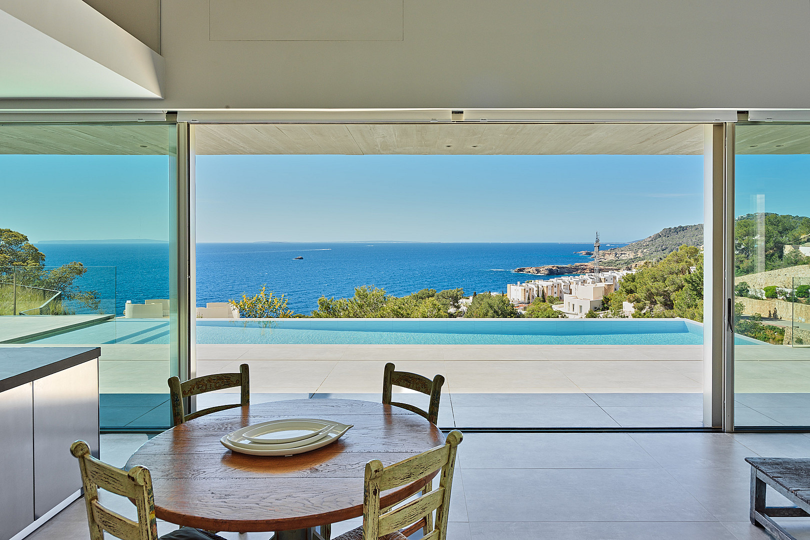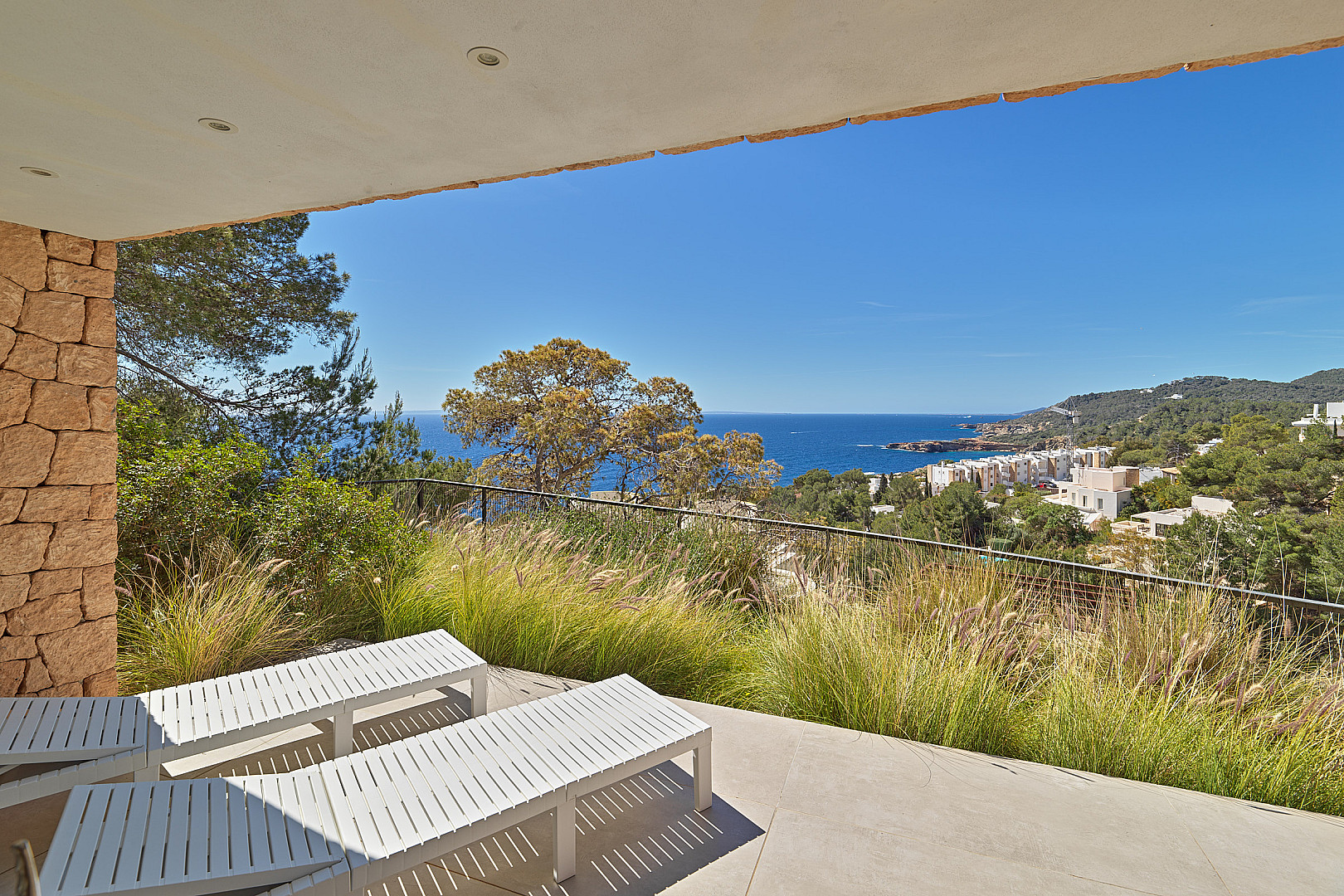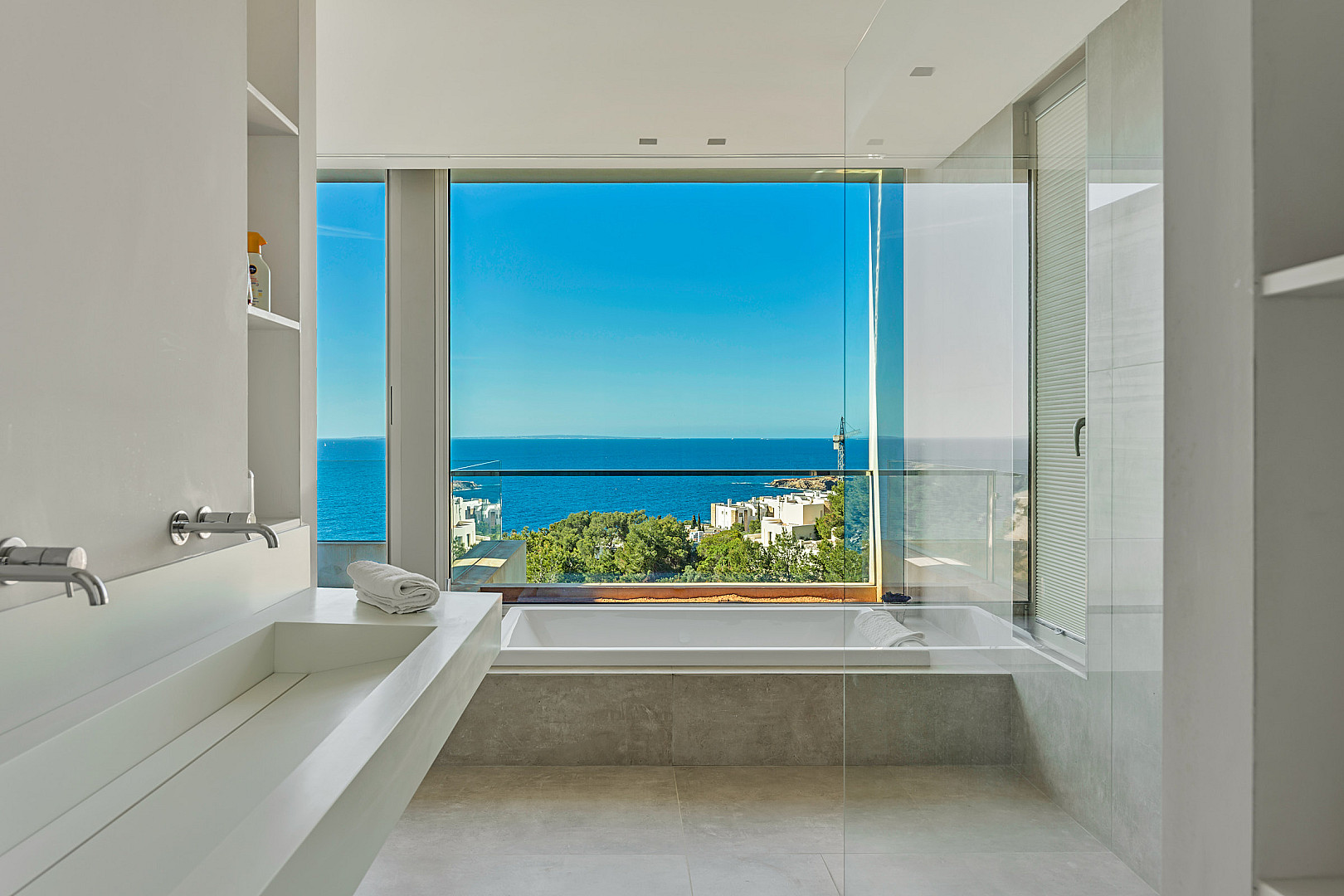 Esta impresionante villa, construida en 2018, se encuentra en la segura urbanización cerrada de Roca Llisa, y ofrece impresionantes vistas panorámicas al mar Mediterráneo, Formentera y las colinas verdes circundantes. Diseñada con una arquitectura inteligente, la propiedad se beneficia de una regulación natural de la temperatura: en verano, el sol alto mantiene los interiores agradablemente sombreados, mientras que en invierno, el sol más bajo calienta suavemente la vivienda. La villa está construida con los más altos estándares técnicos, con instalaciones modernas y aire acondicionado integral. El estilo arquitectónico combina el minimalismo moderno con un toque de diseño brutalista, creando un ambiente atemporal y sofisticado. La zona de estar y comedor de planta abierta con chimenea, ventanales de suelo a techo y techos de doble altura se conecta de forma fluida con las terrazas exteriores y la piscina infinita de agua salada, ideal para nadar y tomar el sol mientras se disfruta de la vista al mar. La propiedad ofrece tres amplios dormitorios, cada uno con baño en suite, además de un aseo de cortesía y un nivel de entreplanta que puede servir como sala de estar, despacho en casa o espacio creativo. Una casa de invitados independiente (casita) incluye un dormitorio y un baño privado y podría equiparse fácilmente con una pequeña cocina, lo que la hace ideal para invitados o alojamiento de personal. Debajo de la piscina hay una sala técnica, una sala adicional polivalente que podría servir como habitación de personal o de invitados, y un espacio dedicado para el sistema de climatización (HVAC). La villa dispone de dos plazas de aparcamiento en el nivel superior y dos plazas adicionales abajo, ofreciendo accesos separados a la casita y a las áreas técnicas. Equipada con un moderno sistema de alarma, la propiedad garantiza seguridad y tranquilidad dentro de la ya cerrada urbanización. El diseño minimalista permite a los futuros propietarios personalizar los interiores según su gusto y estilo de vida. Con solo unos pocos escalones desde la zona de aparcamiento hasta la entrada, esta vivienda ofrece un acceso cómodo y una vista panorámica inmediata al mar al entrar: una obra maestra arquitectónica que combina estilo, confort y eficiencia.