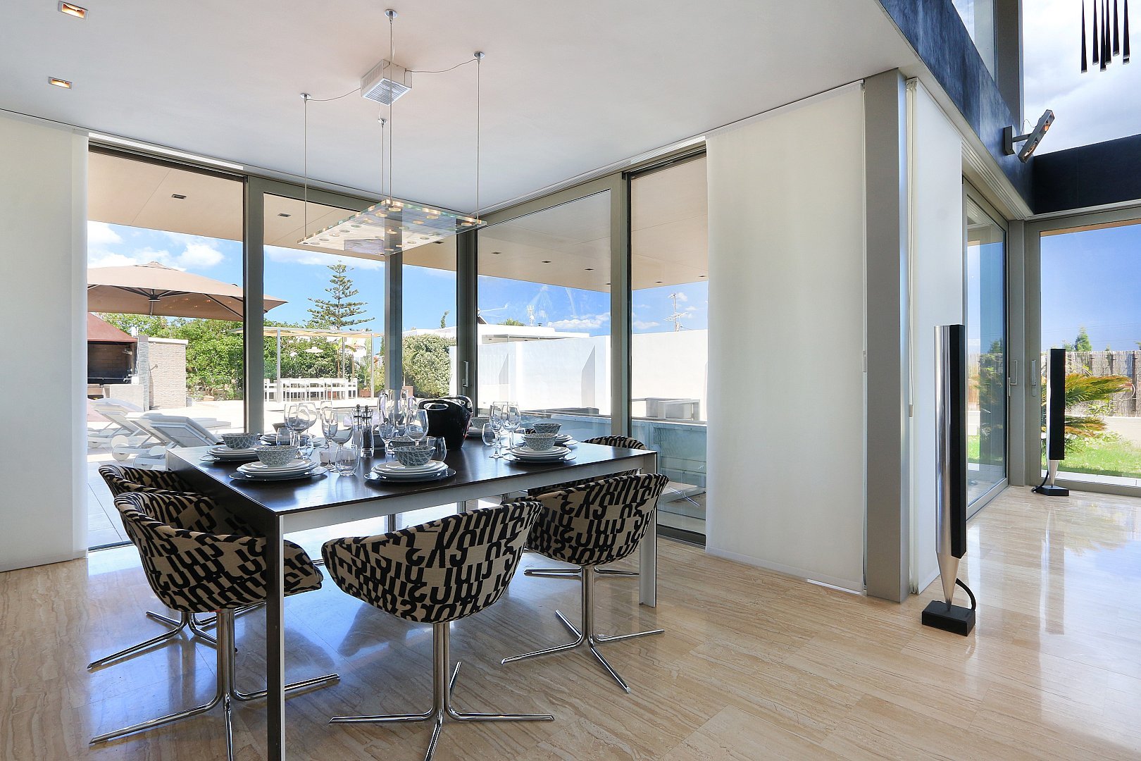 Esta exclusiva propiedad es una moderna residencia de alta gama situada en el deseable barrio de Sa Carroca, enclavado entre la ciudad de Ibiza y Sant Jordi. Ofreciendo lo último en lujo urbano, está a sólo cinco minutos del centro de Ibiza, proporcionando fácil acceso a todas las atracciones y servicios de la isla, manteniendo un entorno tranquilo y privado. La casa ha sido meticulosamente renovada con los más altos estándares de equipamiento, electrodomésticos y decoración, garantizando comodidad, estilo y espacio. La propiedad cuenta con cuatro dormitorios dobles y una sala de cine, ideal para el entretenimiento familiar. El salón está equipado con sistemas de sonido Bang & Olufsen de última generación que realzan todas las estancias de la casa. Los amplios exteriores cuentan con una gran piscina, amplias terrazas, una zona chill-out y un comedor al aire libre. Además, la propiedad incluye una zona de barbacoa profesional para comer al aire libre y un gimnasio bien equipado en el sótano. En la planta principal, encontrará un amplio salón con techos de doble altura, TV vía satélite y un comedor abierto. La cocina americana, equipada con electrodomésticos de alta gama, conduce directamente a la zona de la piscina. Hay tres dormitorios dobles con baños en suite y un lavadero junto al patio trasero. La primera planta ofrece un lujoso dormitorio principal con su propia zona de estar, sala de TV, terraza y baño en suite, que constituye el refugio privado perfecto. El sótano cuenta con una sala de cine (también utilizable como dormitorio doble), un dormitorio individual, un gimnasio con aparatos de cardio y un gran aparcamiento subterráneo con amplio espacio para varios vehículos.En el exterior, podrá relajarse junto a la piscina privada con tumbonas, disfrutar de una cena al aire libre con una mesa para 12 personas o preparar una comida a la parrilla en la zona de barbacoa profesional.Los jardines de estilo mediterráneo están bien cuidados y contribuyen a la tranquilidad general de la propiedad.La casa cuenta con comodidades modernas como aire acondicionado en todas las habitaciones, un sistema de televisión por satélite, sonido Bang & Olufsen integrado, Wi-Fi en todas partes, sistema de alarma y aparcamiento privado vigilado.Esta propiedad ejemplifica el lujo moderno, combinando estilo, comodidad y conveniencia en una ubicación privilegiada en la isla.