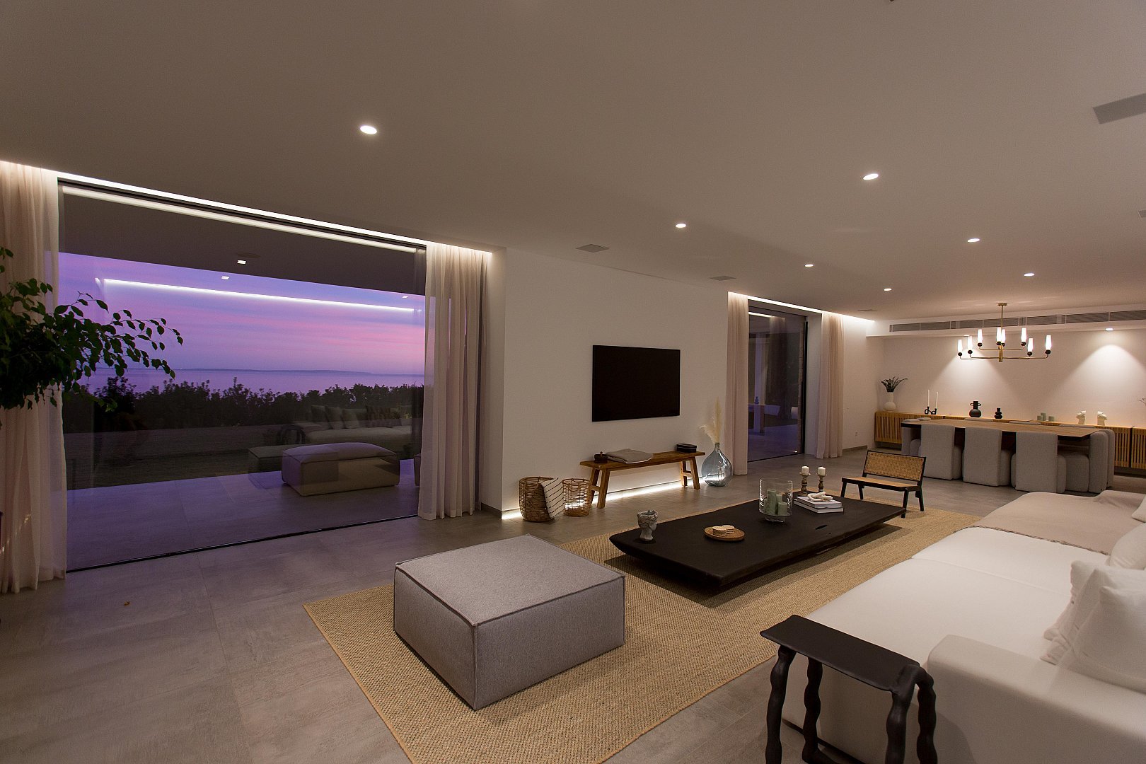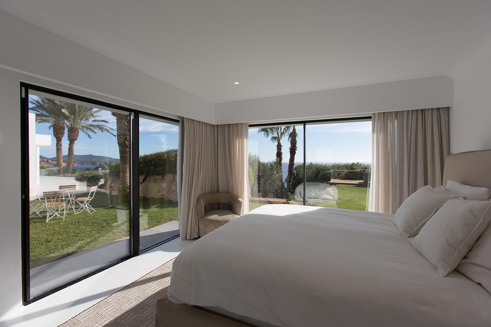 La villa está situada en la urbanización privada más exclusiva de Ibiza, en la costa del Parque Natural de Es Cubells, que durante mucho tiempo ha sido considerado uno de los lugares más bellos e impresionantes para villas en el Mediterráneo. La villa es una de las impresionantes propiedades situadas en este entorno escarpado y dramático. Una villa de lujo verdaderamente única con amplias terrazas, comedor al aire libre y zonas de entretenimiento, jardines y una gran piscina. Recientemente renovada en un estilo elegante y moderno, ofrece increíbles vistas al mar desde cada uno de sus cinco dormitorios. Un refugio de lujo perfecto para la familia o un lugar exclusivo para socializar. La villa cuenta con cinco amplios dormitorios y cinco cuartos de baño, incluida una espaciosa suite principal. Cuatro de estos dormitorios se encuentran en la planta superior de la casa principal. El último dormitorio doble es una elegante habitación que da a la piscina. Todos los dormitorios tienen aire acondicionado y acceso a las terrazas exteriores. Una amplia escalera de piedra conduce a la planta inferior, donde hay un gran comedor y sala de estar con grandes ventanales que ofrecen fantásticas vistas al jardín y al mar. El salón tiene acceso al porche y al jardín principal de la propiedad. Desde el salón-comedor se accede directamente a la cocina, muy bien equipada, que tiene una zona al aire libre con una gran mesa de comedor delante, ideal, para disfrutar de comidas con amigos y familia. El mar esta a solo unos minutos a pie. Un garaje doble completa la oferta.